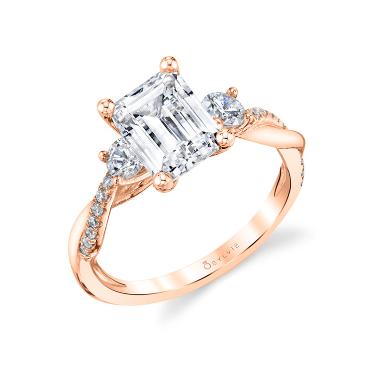 Emerald Cut Three Stone Twist Engagement Ring - Evangeline