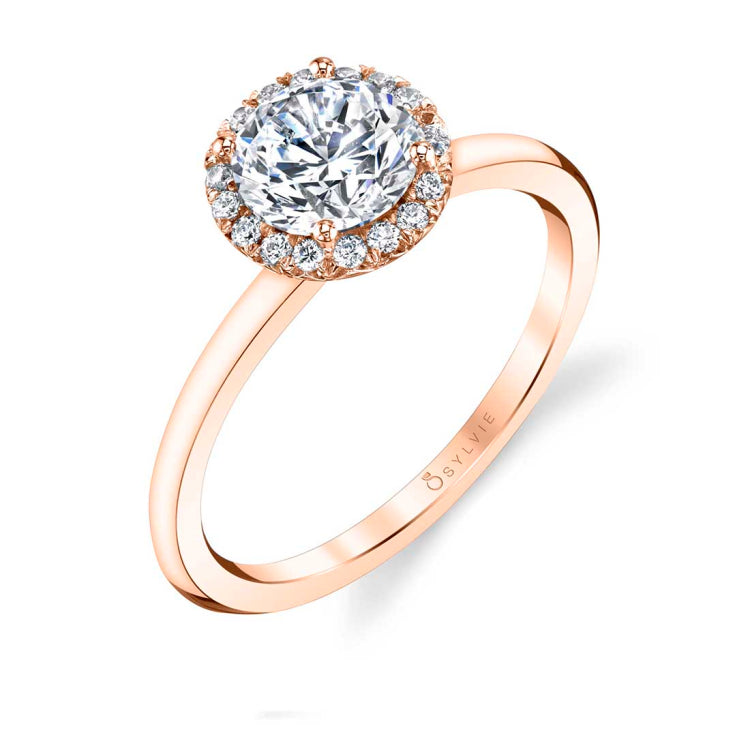 Round Cut Solitaire Halo Engagement Ring - Elsie