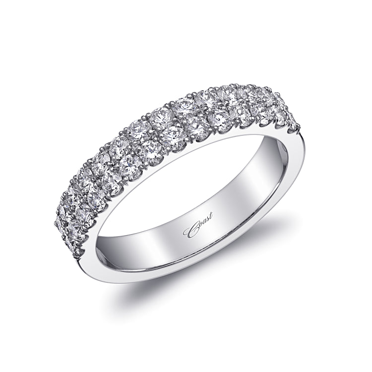 This wedding band from our Allure Collection is delicately set with two rows of round brilliant diamonds in microprongs.